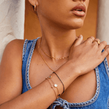 Carla – Ein zartes, goldfarbenes Armband mit kontrastreichen Rund-Elementen.