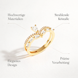 Amira – Goldener Ring mit zartem Glanz und Kristall.