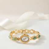 Clara – Goldene Uhr mit länglichem Zifferblatt.